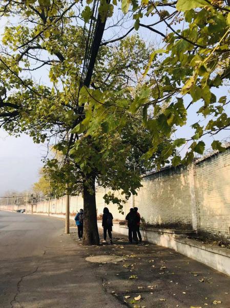 上午九点多,大家聚齐了。有坐公交来的,有走着来的,有骑车来的,有开车来的。有早到的,有迟到的,有吃过早饭的,有没带午饭的,还有去新疆饭店买馕的,还有去看馕的。一小会儿功夫,万事消停,边走边聊,来到了第一目标地----凤凰亭。