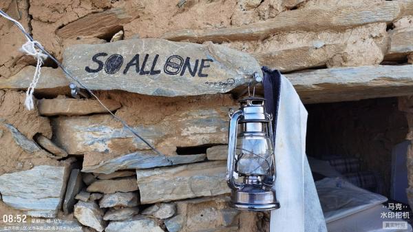 羊场在水泥路尽头,大约上百只羊,此地有设计巧妙的雨水收集水泥沟槽和水窖。还有一个小拖挂式房车,还有一个石头屋,有个牌子写着英文,阿燚说是久久归一之意。