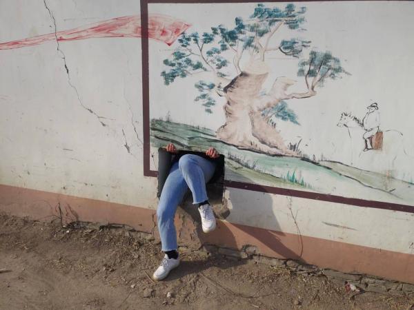 五环路沿途的小路还有小土丘,穿过土丘前边的路就被墙阻断了,不过旁边正好有个一人宽的小洞,可以钻过去。