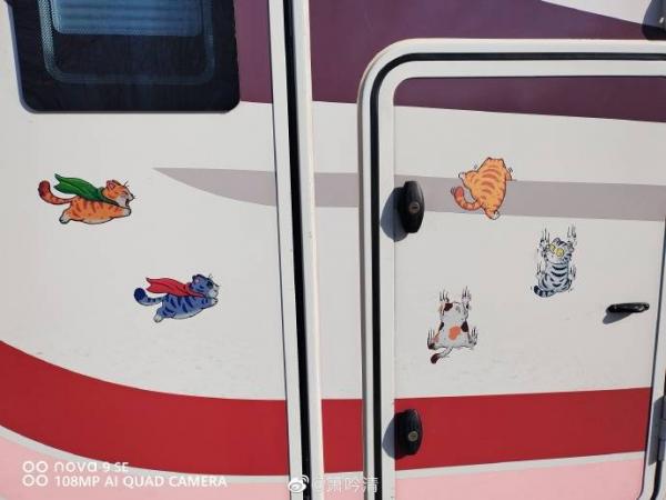 路过西山壹号院看到某房车,卡通猫贴纸很可爱