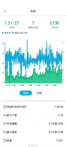 本次数据记录:7公里,上升57米