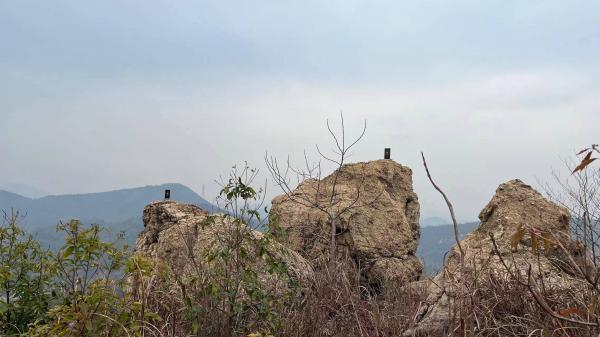 道仙庙岭海拔200余米,从岭脚南面上山,沿途遍地都是去年干枯的蕨草。行至山脊,远望是连绵的小山,此起彼伏,直穿至北面下来。沿路至金鸡岭,岭脊飞来石上有袖珍版的道仙庙。对面汪家岭已经开发修出了大马路,巨大的白石头全景一览无遗,2021年10月份开题爬此石头的情景又浮现眼前。从新村村、石门段再到朱四坡红旗水库,往东是一条极好的山路。绕行黄登仙再往南经袁家祠堂回到出发点。记录累计行程14公里,累计上升468米。