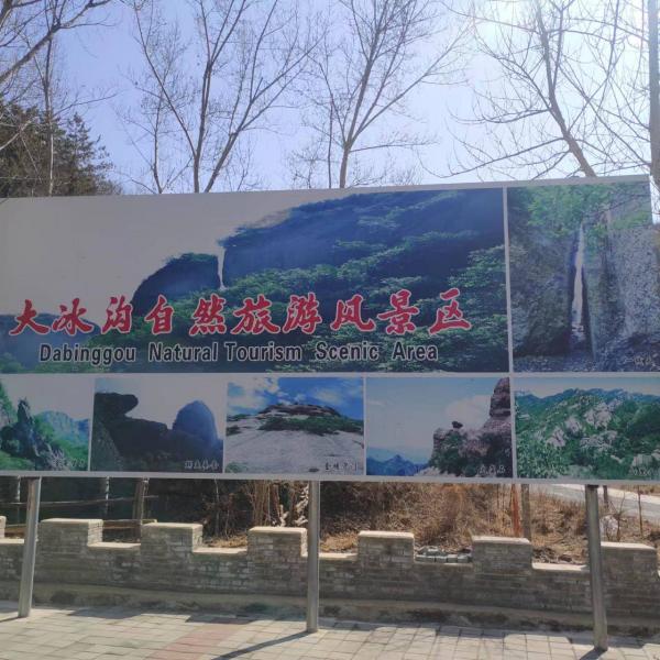 过刘营,来到大冰沟沟口,发现进沟的路面都已经硬化,沟口还是那个停车场,不过边上立起了一个大冰沟自然旅游区的牌子,原来景区的牌楼已经消失不见了。