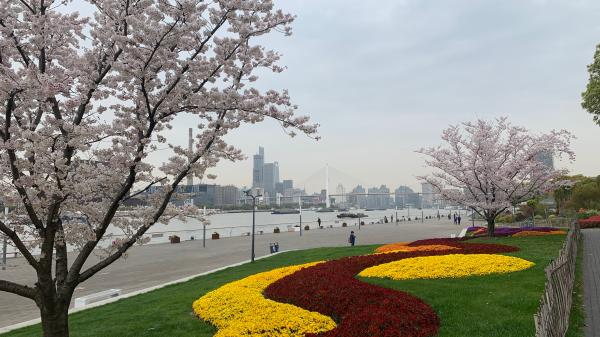 回程走黄浦江,天气阴沉,感觉城市很压抑,也只有在这鲜花的衬托下,才让人愉悦。