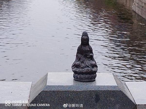 右手走到头,居然看到一尊观音菩萨像,顶礼后,折返往河岸继续前行.