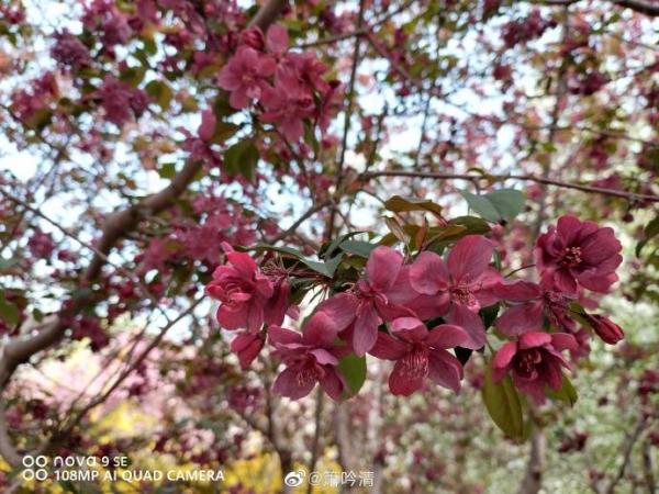 除了常见的西府海棠、垂丝海棠、贴梗海棠,公园里还有些不常见品种比如坠雪、钻石,以及王者、鲁滨逊等北美引进品种海棠。