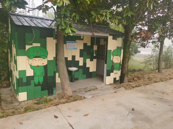 路边出现一个大院,墙头上拉着刺网。旁边村里的公厕标识男女的卡通人物都穿着军装,我怀疑这个大院是驻军。再走一阵,墙上出现禁止破坏军事设施的标语,印证了我的猜想。继续向前,看到了一个伸缩门拦在路中间,我规划的路线居然是穿过了一个部队大院。