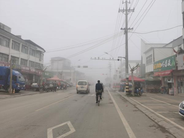 在雾中行车半小时,下车后的管店镇,雾没散。公交车显示屏上预告有小雨,我后悔没带伞,然后进超市买了一把伞,加上原来就有的伞以及去年在昆明出差买的伞,我已经有3把伞了。