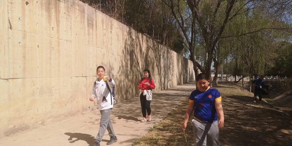 旱河路边最后一段,遇到一只小壁虎,孩子们和它玩耍了一会