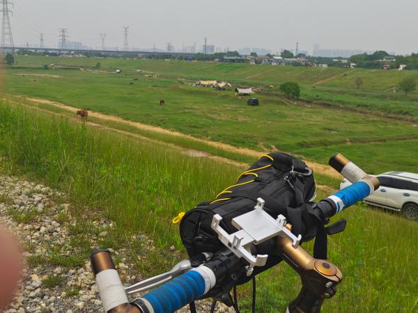 花了半个多小时总算追上他们跟他们一起前行了,当我得知他们已经骑行了30多公里了,我是相当震惊,我的天,骑这么远了,我现在才骑到十公里左右,跟他们不断前行,沿途的风景开始变得不一样起来,我一路骑行过来,途径城市,城镇,现在的景色变得有乡村的味道了,这好像就是乡村!沿着河流边的道路前行,路不好走,是碎石铺的路,是砖头铺的路,个个都参差不齐,骑到上面非常抖,但我们都骑得是山地自行车,适宜。沿着河流前行,河边有一大片草地,有许多在露营,哇!我不禁的感叹出来,你猜我看到什么,是马,很多的马,有人在这里放马,马儿个个看起来都长得很壮实,一看就是精心喂养的,这好像也是我第一次是实在在的看见马,在往前走就看见一群放养的黑山羊,一路前行上山坡,下山坡,在泥巴坡路上飞跃,再次回到公路上,来到榔梨镇这也是我与他们分离的地方最终我回到家,总共骑行三十多公里,骑得不算特别累,最后得知队长骑了八十多公里,哎,我练一半都没到,哈哈,膜拜大佬了