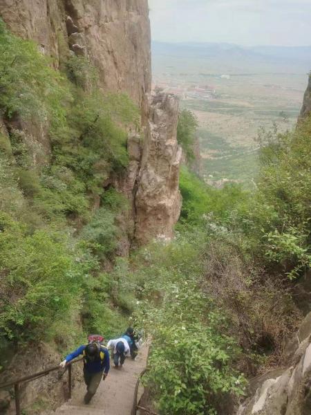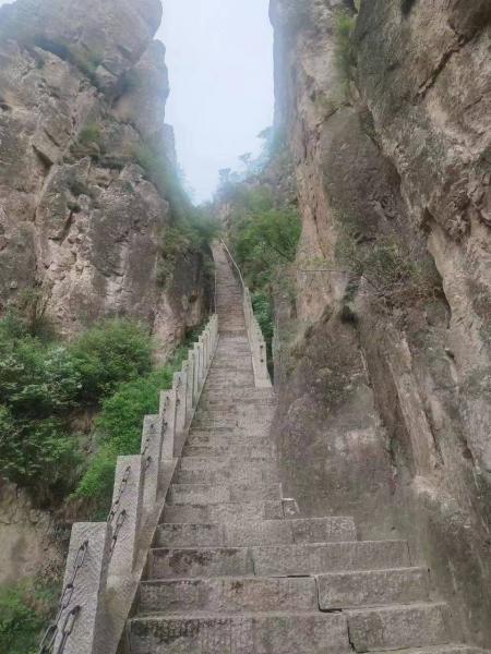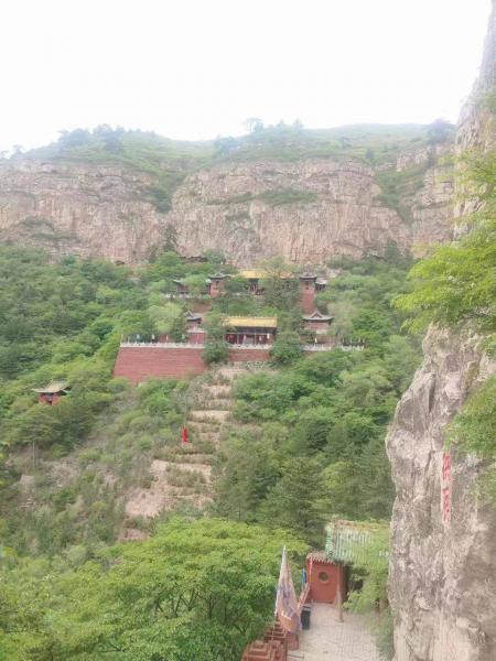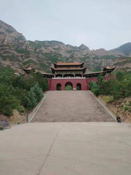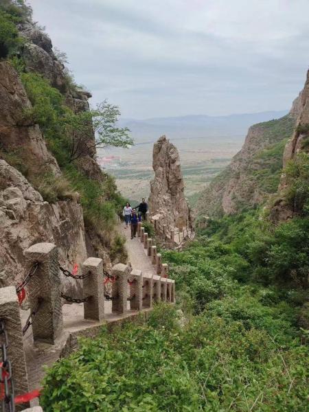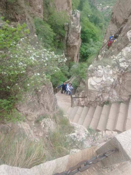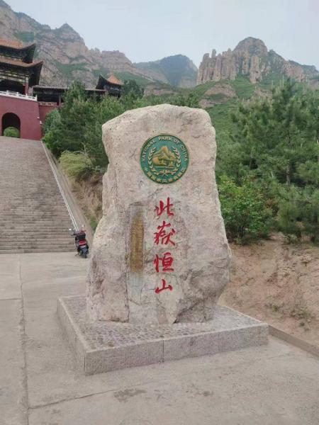 恒山的后上入口(恒山后山照壁)就在县城边上,从汽车站走过去,也不远,人多,为了赶时间我们是打车过去的。进恒山后山照壁,在山下看不到大门口收不收票,今天预报有雨,景区门口也没人。到门口才发现,景区是收门票的,每人35元,比前山便宜10元(同一个景区)。后才才知道,8点半前,进景区是不收票的,过8点半后,从大门的左右两条沟钻灌木,也是能逃票的。后山的上升相对于前山还是比较陡。