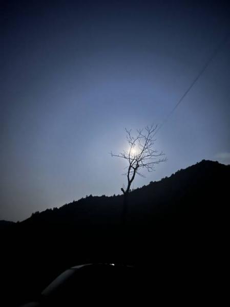 不一会,天黑下来了。一轮圆月从对面山头慢慢爬上来,银色的月光慢慢洒下,洒在田野上,落在屋顶上,照在马路上,铺在我们的身上,也种进了我们的心田。。。轻轻的,柔柔的抚慰着疲惫的我们,抚慰着这一颗颗刚刚澎湃激动过的心。我们都平静下来了,那么安静、乖巧、恬淡、心门被这银色的月光被不知不觉温柔的叩开。。。大家聊起了很多很多温柔的,心灵的,深埋的。。。各种事情。。。就像旁边坐着的就是自家的阿姊,敞开心扉聊着心事。。。就着这温柔的月光,就着这温暖的大地,有小狗保驾,有路过的当地强悍的帅哥护航,有小伙伴的取暖。。。晒着月亮的几小时过得莫名惬意。她的美好来自于天,来之于地,来自于我们的周遭和我们心底那纯粹的温柔!