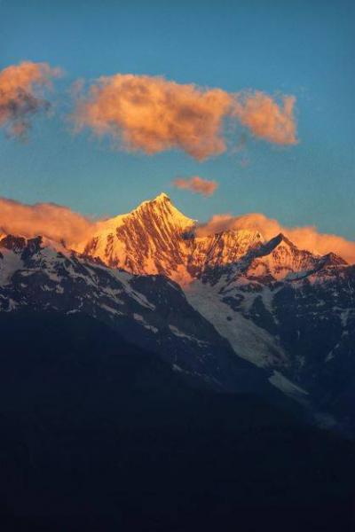 来雨崩,必定要观赏日照金山,大家常说,看到日照金山,能带来吉祥安康。出发前,一直查看天气,由于是雨季,心里面忐忐忑忑。早上5:45 就起床,在客栈楼顶找了个合适的机位,满怀期待的等待金山出现。
