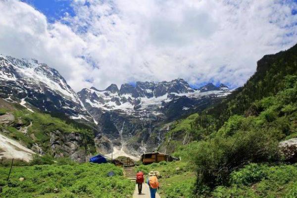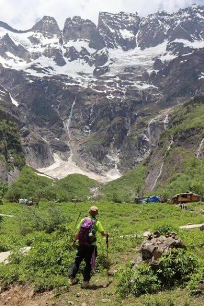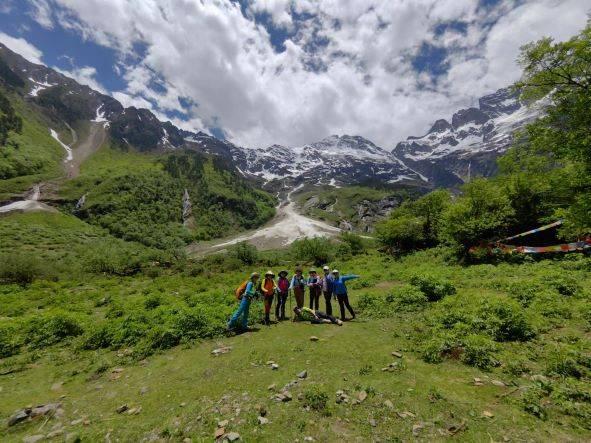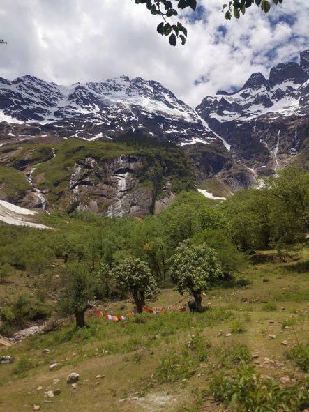 不知道走了多久,我们抬头,看到远山的雪线,真的很雄伟、很震撼。