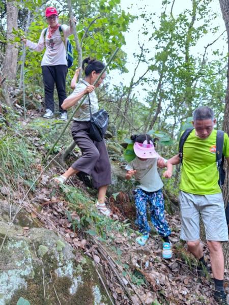 小谢今天穿了一双塑料凉鞋+七分裤,好在他们出走社从来不以装备论英雄,课题要求的是“结实的鞋”,她这双塑料凉鞋是结实的,不过,后来她也吃到了苦头,右膝以上一大片皮肤红肿,不知道粘到了什么毒物,看上去都痒的难受。