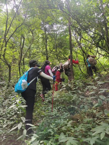 韶山韶阳村委集合后,一行往山里前进。