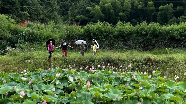 万花千里联系了一台小面包车,17公里路程80元送我们去了村委会,墨陌一行4人直接就开车回家了,我和万花开车去接留守等待的人。时间还早,开题人继续带领我们完成水库游泳项目,晏家洞水库水量很少,水质一般,但木瓜和阿诗玛还是欢欢喜喜的下去了,开题人则带领我们绕水库徒步一圈,中间看到了期待的一小片荷塘,荷花密集的开满了池塘。走的游的都尽兴了,老朋友相见阿诗玛和木瓜特别开心,一定请大家共享晚餐,于是又有了开心时刻。只是后续的活动让先走的墨陌很是气愤,对开题人耿耿于怀。