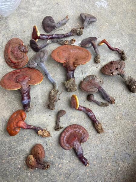 翻越虎形山垭口下到山的另一边,树荫下路歺,能量又发现了树桩上的林芝,欢喜极了。