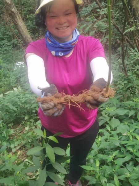 气温不高可是湿度大又没风,体感还是不理想。这次的线路不错,没有齐腰的茅草,山里小路清晰可见。很快就从山谷缝里往上直升,今年缺水,谷沟无水流,只有岩石。单调的感觉很快就打破了,欣子一声惊呼“黄精”,能量和阿诗玛如战士般精神倍儿棒的挖了起来,我们旁观者乘机平缓喘息。