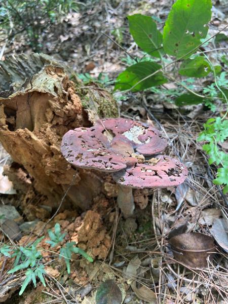 后来跟上社友,我得瑟了一次又一次,欣喜之情溢于言表。在路餐地,又发现了一窝又一窝灵芝,包括紫芝。小蝶真是个善良的好孩子啊,她的发现都让给了我,而我却只是心里默默地感恩☺️。后面,发现灵芝便是常事了,我就不再赘述了。