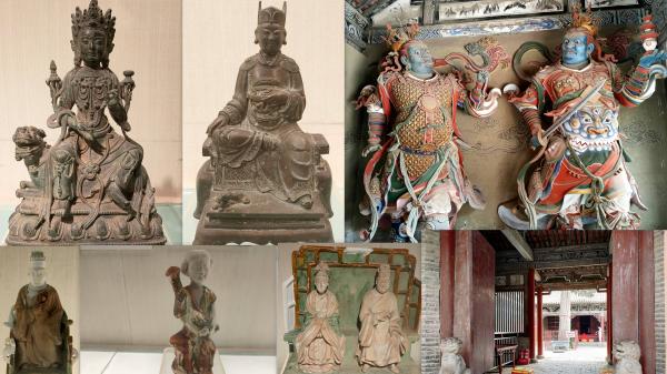 小三间殿堂,明代悬塑500尊之多,挂满了三面的墙壁。悬塑人物涵盖儒释道三教。