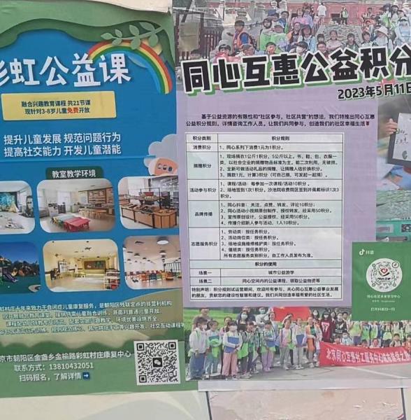 我们看到,这里的教育服务除了市场化方式外,还有社区居民都可参与的公益兑换方式。比如这个“同心互惠公益积分”,就包括了志愿者参与公益服务后,折算积分,可以用积分来换取服务。另外还有一些公益课程,通过各种渠道的捐助和会员费的方式来支持。