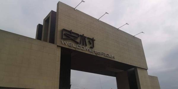 村口的现代主义风格的门楼坐落在①的位置,村口的环岛车流人流如织,是皮村交通枢纽。作为皮村象征的门楼,透露的生猛信息让人印象深刻。