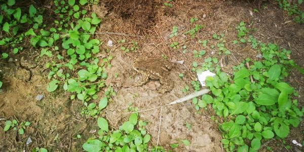 一次休息的时间,末末发现松树下一个松针和土覆盖的洞,他扒呀扒,扒出一只癞蛤蟆。sorry,蛤蟆君,打扰你睡觉了。