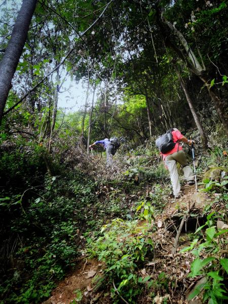 美好的都是短暂的。4、5公里处,一段急促爬升、丛林穿越之后,汗如雨下。气温开始明显上升,山风也不见踪影,躁热感随之而来。