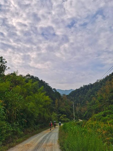 翻过山头来到山脚,不料路线有误。快到终点难免心情激动,步伐加快,大伙说着说着没注意到岔路口的路标。重新再上山头,这百余米的爬升是最难的。