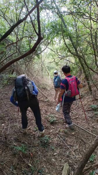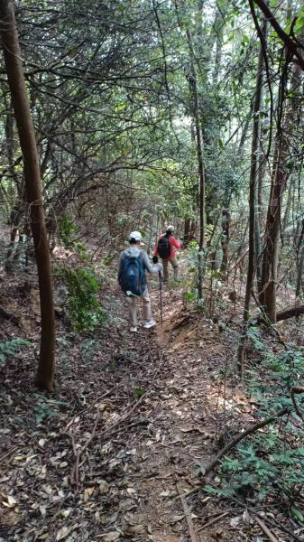 过了瀑布后,没有走山脊,沿着山谷走了。在第一叉路口,遇到景区升级改造设计人员,在第二叉路口,众人休息时,我去探路,可以下到丝竹安。下次要好好探一探。