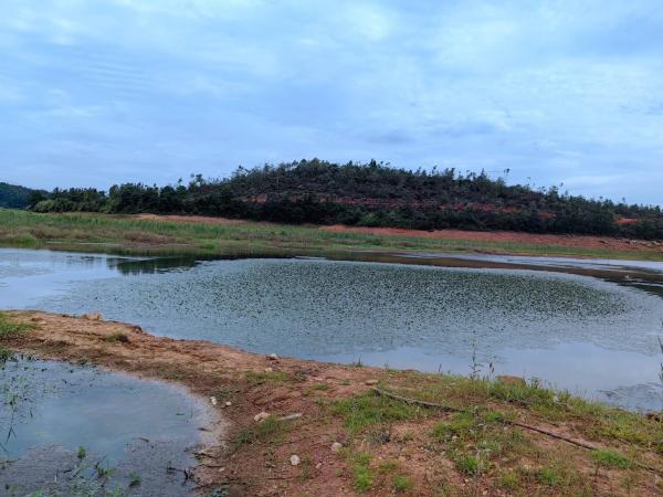 库区上游,长满了2米多高的草,一些水位下降后来不及排水的低洼处就形成了水塘,里面有菱角,这些菱角和板栗一样,也是有的是孩子有的成熟了。