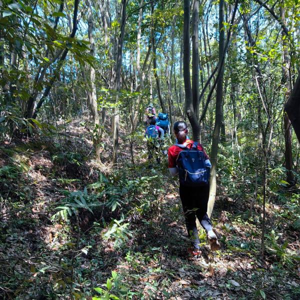 继续向着目标前进,如果只有我一个人独行,我会沿着水泥路直接去明月村,但人多了,就有不同的要求,大多数的人是要求走小路的,那就走吧,走到没路时,就直接上山,然后,上山,下山,大多数情况下,我们是直接在林子里擂下山的。