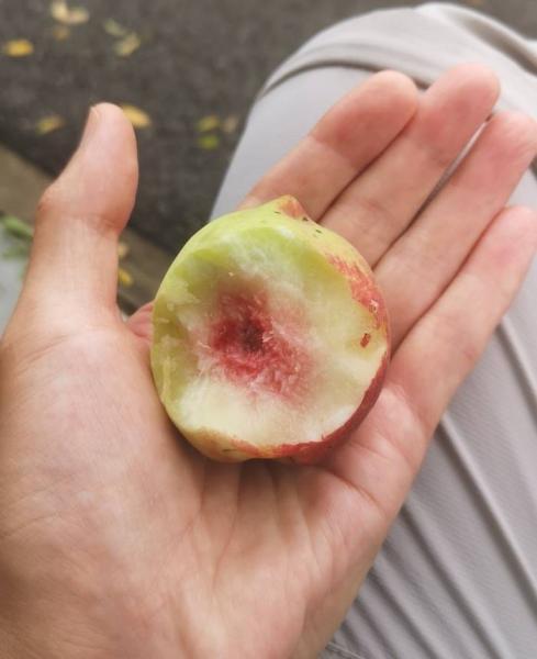 这一次是果实开始吸引我们。最多的是桃,路边到处是桃树,很多落到地上开始发酵了,还在树上的也大多成熟了,轻轻一碰就落下来。头一次吃这些绿化带结出的桃子,意外的桃香,觉得这是真的桃的味道。