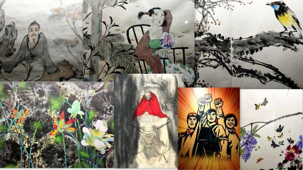 展厅国画头部大咖作品,当同学喜欢色彩,随意挑挑拣拣拍照。