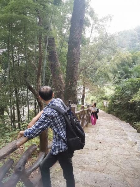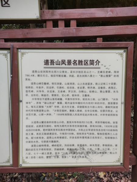 道吾山空气清新,十分安静,景区设施齐全,一路上只碰见几个游人。登山游道两旁高大苍劲的马尾松又称引路松,多在200年以上,为道吾山增色不少。