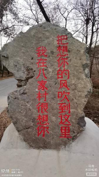 之后遇到石板路,之后有铁索护栏,之后木栈道,标识牌。我考察了一条山脊大裂缝,宽约2米左右,东侧深度约8米,长度50米以上。西侧有个深洞,滚下一块石头用了10秒钟。抄近路到水泥砖头路穿了一段灌木,耗时20分钟,到了八家村是16:50。公里两侧山坡石头上写了几百个福字,西侧岩壁还搭了观景台,岩石上写了巨大福字。后来路过坦克公园,天黑了不好拍照。为了实现前2次愿望摸黑路,走了2个多小时 ,10公里终于到了朝凤庵村公交站,此时是19:07。山上还遇到一个驱冰雹的炮弹,没敢动,怕二次伤害。星空还捡到一个电力系统安全帽。