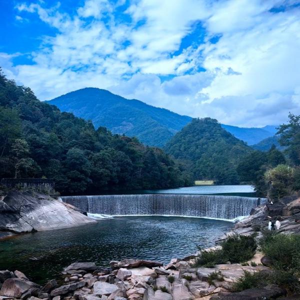 小溪右边是云灵山漂流风景区,本想去看看的,但发现山路上泥土飞扬,是个施工现场,放弃了。