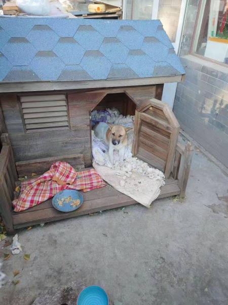早到快哉大王风同学,等大家的时候,在群里说,他已经到了,天气太冷,都冻成狗,发完微信,我和箫吟清已经到大觉寺商店门口,看到商店边的狗窝里的狗,感觉狗可一点都不冷,还有床被子。