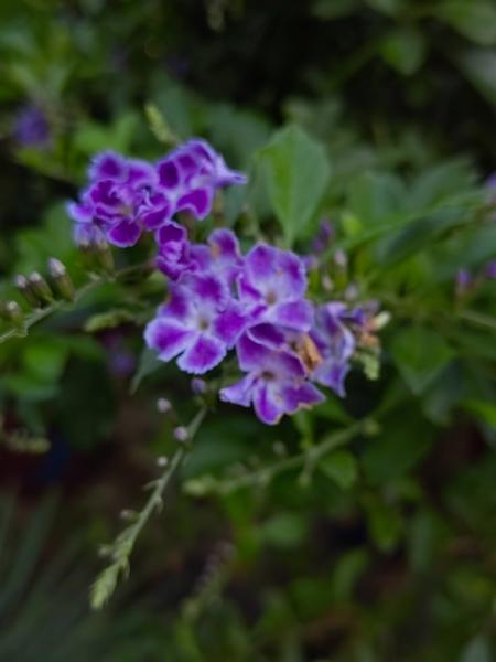 蓝紫色的花瓣,边缘略卷曲,