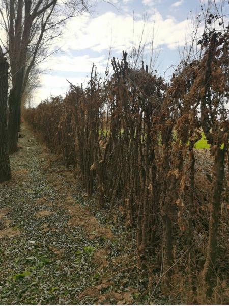 铁丝网偶尔会出现,有最近一次疫情中树立的,也有更早的,还有在旧版铁丝网外侧又树立的铁丝网,可能浪费材料的做法太明目张胆,又把拉上的新铁丝网拆除,但留下了铁桩的痕迹。这次又看到了用花椒树构成的边界。还有输气管道也沿着省界布设。