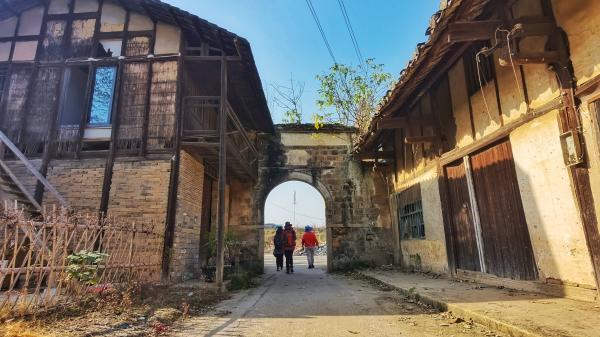 ( 过去的东窑港古镇宽3米长300米的麻石街上,“张大盛”“游大昌”“易恒顺”等七大商行沿江一字排开,相当气派。镇上商铺有40多家,逢年过节这里更是热闹,赶集采购的人络绎不绝。如今,这里只剩下一截瓦碴围子、三栋青砖木屋、一个青砖拱门及一座重建的白龙庙,旁边只有一户守庙人家。)