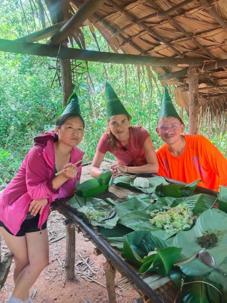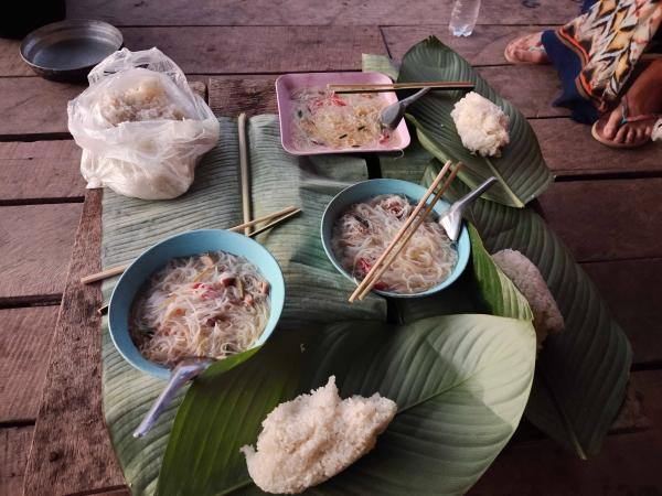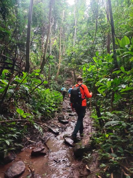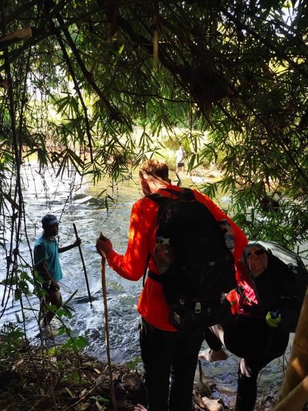 很遗憾,我没有坚守勇于探路的风格。到了琅南塔后,找了个店交了大约 50 美金的 kip 就等着第二天集合拉走。这次选的是 3 天的行程:1 天 homestay+1 天 camping,最后一天回程。 同行的是一对法国情侣和一个老向导。后来聊天得知,情侣们是第一次来原始森林徒步。