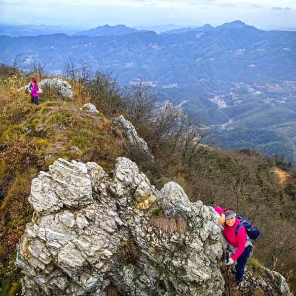 原来这座山的精华是山顶绵延不绝的岩石,攀爬在刀尖般的悬崖之上,如同巨龙的脊背。