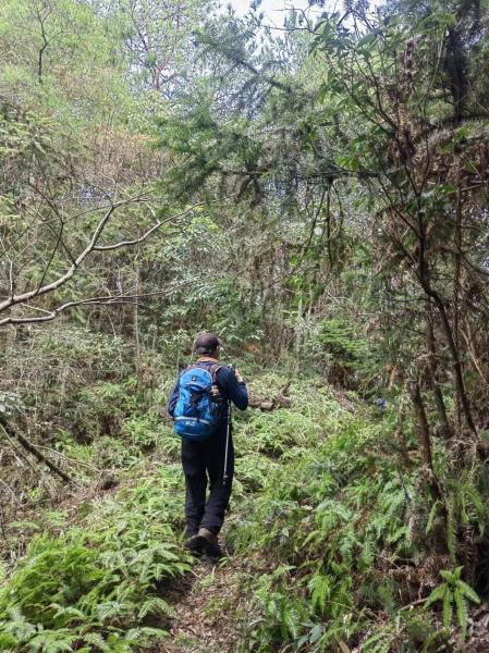 过山溪之后,路比较荒野,久未人行。上到半山腰。一路腰线,小路蜿蜒曲折。