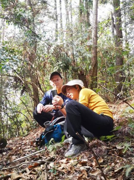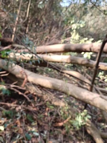 下到另一个山脉,放弃了去摘柚子想法,沿主山脊慢慢向山下走,走到海拨500米左右,没有倒树,路也宽好多,也放弃了去看300年古樟树另一条路,回到起点,才3点半。