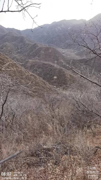 石佛寺村过了龙王庙就是观音菩萨小殿,东侧下沟接着上山,沟底有块石碑刻着八达岭林场,以前路过还说谁把墓碑安在河里也太不懂规矩了。沟里有路,沟右转上到垭口,垭口南侧小峰有几棵松树,从垭口朝东下降到了两块绿色铁网围着的墓地,上面一块是甄家宗族,下面一块地是高家。