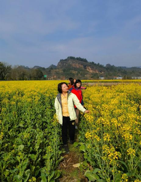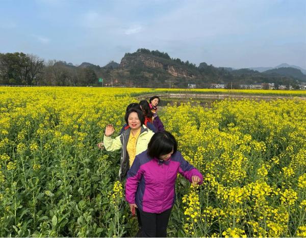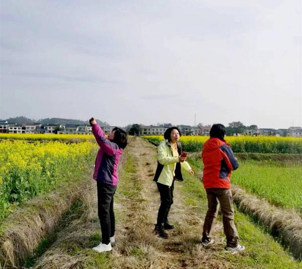 快到目的地的时候,沿途有大片的油菜花,随行的女士们心生雀跃,扑向花海