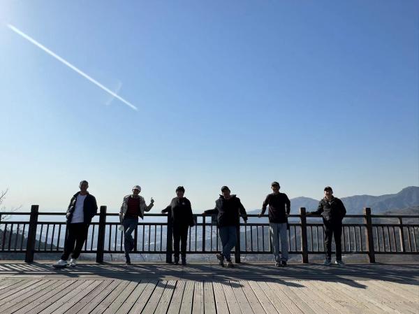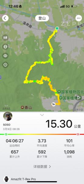 北宫门出站,346与我们三个只差一个栏杆的距离,只好等下一辆,那时那刻,南瓜叶已经到了集合地点,钟山说,他又双叒坐错车了。8:28到太舟坞站的时候,看见云手那灿烂的笑容。这时候,南瓜叶已经在山里溜达一圈返回车站等我们了。15分钟后,钟山到站了,南瓜叶又一次返回,去会钟山,大概这么往返,方能略微接近一些他日常锻炼的强度吧。这里要插播一个故事。春节后去蒙自会独行叟、南瓜叶和静走,独行叟和静走做后勤,我在南瓜叶精心设计下,恣意地跟他爬了五天的山。其中一次日行5万步,另一天,我们累计上升830米、行走25km,平均时速达到5.3km/h——这大概是我入出走社以来,从数据上看,最大强度、最密集的一次爬山经历了。那几天太开心、太酸爽和难忘了。所以,南瓜叶一大早往返几次去车站“接人”,很正常,对吧?