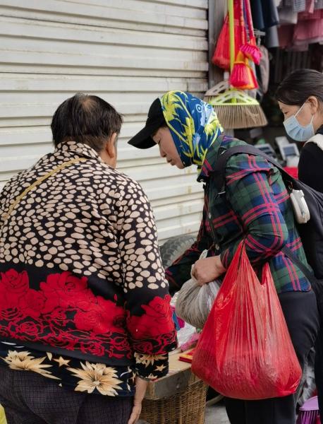 骑行龙泉广场、野生菌博物馆、野生菌交易市场赶集大采。三人准时到达约定地点,分头去扫码小黄车,我和巧笑比较顺利,点点扫码之后要她充钱,充完之后还是余额不足,只得放弃选用小绿车,巧笑在前面带路,我和点点一路紧跟,还好易门车少人少,骑行路面比较宽松,慢悠悠的感受清风拂面的惬意。阳光酒在身上,心情好到爆。到达易门野生菌交易市场,先找卖菌子的菜农,再买叫不出名可食用的花,买青菜、买水果、买豆子、买买买,一会功夫就大大小小三双手都挂满了,实在提不动了,才放弃继续采购,出市场扫小黄车往回走,大大小小购物袋挂满小黄车,骑车载重还是头一次,骑行真的需要勇气:)